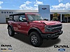 This 2025 Ford Bronco Badlands in Ruby Red Metallic Tinted Clearcoat, features Equipment Group 334A Lux Package (2-Door Intelligent Access w/Lock/Unlock, 360-Degree Camera, Adaptive Cruise Control, Ambient Footwell Lighting, Connected Navigation, Dr & Pass Illuminated Sliding Visor Vanity Mirrors, Dual Smart Charging USB Ports, Dual-Zone Electronic Automatic Temperature Control, Evasive Steering Assist, Front Parking Sensors, Front Row Heated Seats, Information on Demand Panel, Power Outlet - Back Side of Center Floor Console, Radio: B&O Sound System by Bang & Olufsen, Rear Parking Sensors, Sideview Mirrors, and Universal Garage Door Opener), 4-Wheel Disc Brakes, 4.7 Axle Ratio, 7 Speakers, ABS brakes, Air Conditioning, Alloy wheels, AM/FM radio: SiriusXM with 360L, AM/FM Stereo, Auto High-Beam Headlamps, Auto High-beam Headlights, Auto-dimming Rear-View mirror, BLIS Blind Spot Information System, Brake assist, Compass, Delay-off headlights, Driver door bin, Driver vanity mirror, Dual front impact airbags, Dual front side impact airbags, Electronic Stability Control, Emergency communication system: 911 Assist, Exterior Parking Camera Rear, Front anti-roll bar, Front Bucket Seats, Front Center Armrest, Front fog lights, Front reading lights, Front wheel independent suspension, Fully automatic headlights, Heated door mirrors, Heated front seats, Heated steering wheel, Illuminated entry, Integrated roll-over protection, Lane-Keeping System, Leather Shift Knob, Low tire pressure warning, Marine Grade Vinyl Heated Bucket Seats, Occupant sensing airbag, Outside temperature display, Overhead airbag, Overhead console, Panic alarm, Passenger door bin, Passenger vanity mirror, Power door mirrors, Power steering, Power windows, Pre-Collision Assist w/Automatic Emergency Braking, Radio data system, Rear-View Camera, Remote keyless entry, Security system, SiriusXM w/360L, Speed control, Split folding rear seat, Steering wheel mounted audio controls, SYNC 4, Tachometer, Telescopi