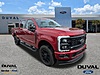 This 2025 Ford F-250SD Lariat in Ruby Red Metallic Tinted Clearcoat, features Black Appearance Package (6'' Ebony Black Angular Running Boards, Black Painted Front Grille Surround, Body Color Front and Rear Bumpers, and Ebony Black Painted Mirror Caps), FX4 Off-Road Package (Hill Descent Control, Off-Road Specifically Tuned Shock Absorbers, and Unique FX4 Off-Road Box Decal), GVWR: F-250 >10K Package, High Capacity 11.6'' Axle Upgrade Package, Order Code 608A (Flow-Through Console, Front ActiveX Trimmed 40/Console/40 Seats, Radio: B&O Sound System by Bang and Olufsen, SiriusXM Radio with 360L, SYNC 4 with Enhanced Voice Recognition, and Wheels: 18'' Bright Machined and Carbonized Gray Aluminum), 4-Wheel Disc Brakes, 8 Speakers, ABS brakes, Adjustable pedals, Air Conditioning, Alloy wheels, AM/FM radio: SiriusXM with 360L, Auto High-beam Headlights, Auto-dimming Rear-View mirror, Automatic temperature control, BLIS with Cross-Traffic Alert, Brake assist, Bumpers: chrome, Compass, Delay-off headlights, Driver door bin, Driver vanity mirror, Dual AGM 68 AH Battery, Dual front impact airbags, Dual front side impact airbags, Electronic Stability Control, Emergency communication system: SYNC 4 911 Assist, Front anti-roll bar, Front Bucket Seats, Front Center Armrest, Front dual zone A/C, Front fog lights, Front reading lights, Fully automatic headlights, Garage door transmitter, Heated door mirrors, Heated front seats, Heated rear seats, Heated steering wheel, Illuminated entry, LED Roof Clearance Lights, Low tire pressure warning, Memory seat, Navigation System, Outside temperature display, Overhead airbag, Overhead console, Panic alarm, Passenger door bin, Passenger vanity mirror, Pedal memory, Power door mirrors, Power driver seat, Power passenger seat, Power steering, Power windows, Privacy Glass, Rain sensing wipers, Rear Parking Sensors, Rear reading lights, Rear seat center armrest, Rear step bumper, Rear window defroster, Remote keyless entry, Security system, Spe
