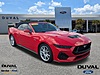 This 2025 Ford Mustang GT Premium in Race Red, features Equipment Group 401A High Package (Leather-Trimmed Bucket Seats w/Color Accents), Ford Co-Pilot360 Assist+, Security Package (Active Anti-Theft System, Locking Center Console, and Wheel Locking Kit), 4-Wheel Disc Brakes, 9 Speakers, ABS brakes, Air Conditioning, Alloy wheels, AM/FM radio: SiriusXM with 360L, AM/FM Stereo, Auto High-beam Headlights, Auto-dimming Rear-View mirror, Automatic temperature control, Brake assist, Bumpers: body-color, Climate Controlled Heated/Cooled Front Seats, Compass, Convertible roof lining, Delay-off headlights, Driver door bin, Driver vanity mirror, Dual front impact airbags, Dual front side impact airbags, Electronic Stability Control, Emergency communication system: 911 Assist, Exterior Parking Camera Rear, Four wheel independent suspension, Front anti-roll bar, Front Bucket Seats, Front Center Armrest, Front dual zone A/C, Front reading lights, Fully automatic headlights, Garage door transmitter, Glass rear window, HD Radio, Heated door mirrors, Heated front seats, Heated steering wheel, Illuminated entry, Knee airbag, Leather Shift Knob, Leather steering wheel, Leather-Trimmed Bucket Seats, Low tire pressure warning, Occupant sensing airbag, Outside temperature display, Overhead console, Panic alarm, Passenger door bin, Passenger vanity mirror, Power convertible roof, Power door mirrors, Power driver seat, Power passenger seat, Power steering, Power windows, Radio data system, Rain sensing wipers, Rear anti-roll bar, Rear Parking Sensors, Rear window defroster, Remote keyless entry, Security system, SiriusXM w/360L, Speed control, Speed-sensing steering, Speed-Sensitive Wipers, Spoiler, Sport steering wheel, Steering wheel mounted audio controls, SYNC 4, Tachometer, Telescoping steering wheel, Tilt steering wheel, Traction control, Trip computer, Turn signal indicator mirrors, Variably intermittent wipers, Ventilated front seats, Voltmeter, and Wheels: 19'' x 8.5'' Shadow Si